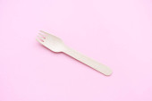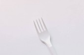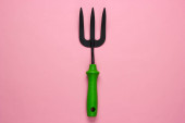 Metalowy widelec lewitacyjny na różowym tle z cieniem