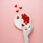 Zlewozmywak z sercami na różowym tle. Koncepcja miłosna, Walentynki, 14 lutego świętowanie, twórczy układ