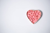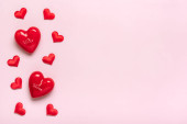Białe pudełko z sercami na niebieskim tle. Koncepcja miłosna, Walentynki, 14 lutego świętowanie, twórczy układ
