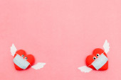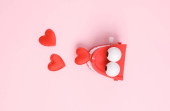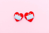 Budzik z sercami na niebieskim tle. Koncepcja miłosna, Walentynki, 14 lutego świętowanie, twórczy układ