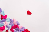 Samolot zabawka z sercami na pastelowym tle. Walentynki, koncepcja miłości
