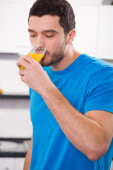 Zdjęcie "Młody mężczyzna pije sok pomarańczowy w kuchni" może być wykorzystywane do celów osobistych i komercyjnych zgodnie z warunkami zakupionej licencji Royalty-free. Obraz jest dostępny do pobrania w jakości wysokiej rozdzielczości do 5760x3840.