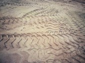 ślady kół na glebie.