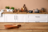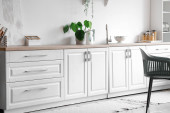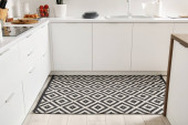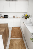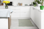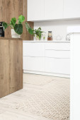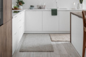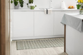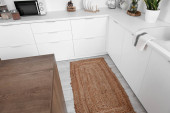 Stylowy beżowy dywan we wnętrzu nowoczesnej kuchni