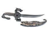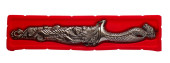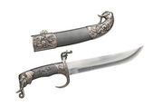 Chiński nóż pamiątkowy stylizowany starożytny sztylet. Izolacja na białym tle.