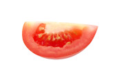 Świeże pomidory przecięte na pół, aby odsłonić soczyste wnętrze, sfotografowane w izolacji studio na białym tle dla koncepcji żywności.