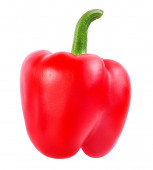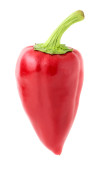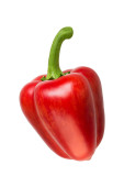 Świeża czerwona papryka z zieloną łodygą sfotografowana w izolacji z bliska na białym tle, idealna do jedzenia i zdrowego odżywiania koncepcje.