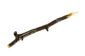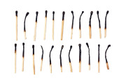 Zbliżenie spalonego drewnianego zapałki z zwęgloną końcówką i resztkami popiołu, izolowane na czystym białym tle, idealne do koncepcji bezpieczeństwa pożarowego i niebezpieczeństwa.