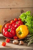 zdrowych warzyw pieprz pomidor sałatka chili na rustykalne backgrou