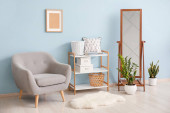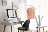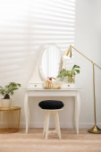 Zdjęcie "Przytulne wnętrze pokoju ze stylowymi białymi meblami, lampą biurkową i pięknymi elementami dekoracyjnymi" może być wykorzystywane do celów osobistych i komercyjnych zgodnie z warunkami zakupionej licencji Royalty-free. Obraz jest dostępny do pobrania w jakości wysokiej rozdzielczości do 5760x3840.