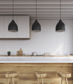 Zdjęcie "Wnętrze nowoczesnej kuchni ze świecącymi lampami i laptopem na stole na wyspie" może być wykorzystywane do celów osobistych i komercyjnych zgodnie z warunkami zakupionej licencji Royalty-free. Obraz jest dostępny do pobrania w jakości wysokiej rozdzielczości do 5760x3840.