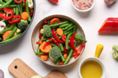 Zdjęcie "Patelnia ze świeżymi warzywami na szarym tle" może być wykorzystywane do celów osobistych i komercyjnych zgodnie z warunkami zakupionej licencji Royalty-free. Obraz jest dostępny do pobrania w jakości wysokiej rozdzielczości do 5760x3840.