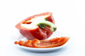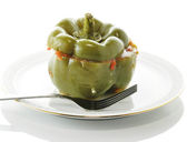 Płyta ze smaczną grillowaną papryką odizolowaną na białym tle