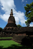 Stary i ruiny pagoda w Kamphaeng Phet Historical Park, Tajlandia