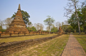 Stary i ruiny pagoda w Kamphaeng Phet Historical Park, Tajlandia