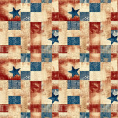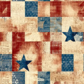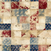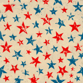 Rustykalny amerykański bezszwowy wzór w tradycyjnych kolorach czerwonym, białym i niebieskim. Nowoczesny i zabawny, wielki wystrój domku wiejskiego, moda sztuki ludowej, tekstylia i 4 lipca tło album