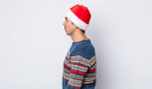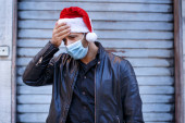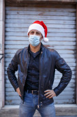 młody brodaty Święty Mikołaj mężczyzna w masce ochronnej