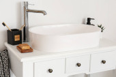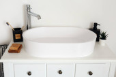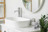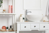 Zlewozmywak z akcesoriami do kąpieli na stole w łazience