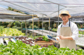 Zdjęcie "Afrykańska grupa amerykańska sprawdza kolejność i zbiera warzywa do skrzyni w szklarni hydroponicznej." może być wykorzystywane do celów osobistych i komercyjnych zgodnie z warunkami zakupionej licencji Royalty-free. Obraz jest dostępny do pobrania w jakości wysokiej rozdzielczości do 5760x3840.