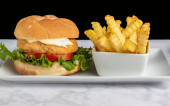 kanapka z kurczakiem podana z chipsami ziemniaczanymi,