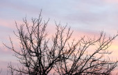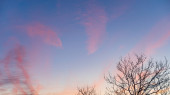 Piękne zimowe niebo Brooklynu z chmurami o zachodzie słońca.