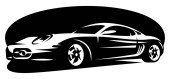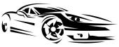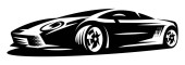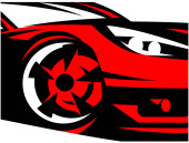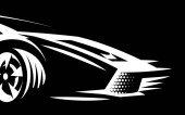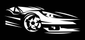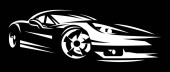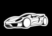 Stylizowany sportowy samochód z niedokończonymi akcentami na czarnym tle. Edytowalny szablon dla projektu, ilustracja wektora koloru.
