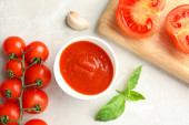 Zdjęcie "Miska smacznego ketchupu i składników na niebieskim drewnianym stole, płaski leżak" może być wykorzystywane do celów osobistych i komercyjnych zgodnie z warunkami zakupionej licencji Royalty-free. Obraz jest dostępny do pobrania w jakości wysokiej rozdzielczości do 5760x3840.