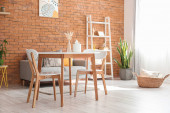 Zdjęcie "Wnętrze kuchni ze stylową lodówką, lady, półki, stół i puste zdjęcia" może być wykorzystywane do celów osobistych i komercyjnych zgodnie z warunkami zakupionej licencji Royalty-free. Obraz jest dostępny do pobrania w jakości wysokiej rozdzielczości do 5760x3840.