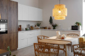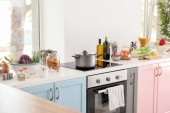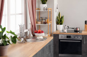 Zdjęcie "Wnętrze jasnej kuchni urządzone na urodziny" może być wykorzystywane do celów osobistych i komercyjnych zgodnie z warunkami zakupionej licencji Royalty-free. Obraz jest dostępny do pobrania w jakości wysokiej rozdzielczości do 5760x3840.