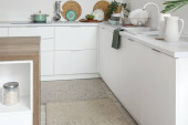 Zdjęcie "Wnętrze nowoczesnej kuchni ze stołem na wyspie i białymi licznikami" może być wykorzystywane do celów osobistych i komercyjnych zgodnie z warunkami zakupionej licencji Royalty-free. Obraz jest dostępny do pobrania w jakości wysokiej rozdzielczości do 5760x3840.