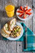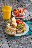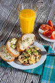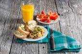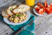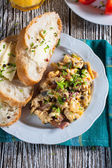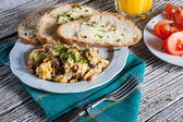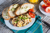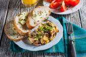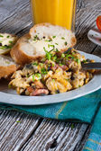 Jajecznica z szynką i szczypiorkiem.