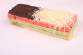 Tęczowe ciasto na białym tle