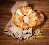 skład świeżego chleba na drewno