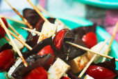 Zdjęcie "Kanapki z piknikiem. pomidory wiśniowe, ser i liście bazylii na drewnianych patykach. Apetyczne przekąski na talerzu. Pyszne i zdrowe przekąski, makro" może być wykorzystywane do celów osobistych i komercyjnych zgodnie z warunkami zakupionej licencji Royalty-free. Obraz jest dostępny do pobrania w jakości wysokiej rozdzielczości do 5760x3840.