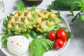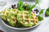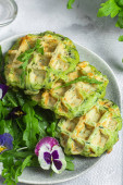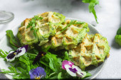 Gofry cukiniowe z rukolą w misce