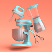 Zdjęcie "Zestaw naczyń kuchennych, garnek, patelnia i chromowane naczynia wiszące na półce na pomarańczowym tle. 3d renderowania procesu gotowania krok po kroku i akcesoria do gotowania, mieszania i mieszania" może być wykorzystywane do celów osobistych i komercyjnych zgodnie z warunkami zakupionej licencji Royalty-free. Obraz jest dostępny do pobrania w jakości wysokiej rozdzielczości do 5760x3840.