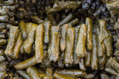 Zdjęcie "Wypchane liście winogron na szarym tle. Przysmaki kuchni tureckiej. zdrowe przekąski. Nazwa lokalna yaprak sarma" może być wykorzystywane do celów osobistych i komercyjnych zgodnie z warunkami zakupionej licencji Royalty-free. Obraz jest dostępny do pobrania w jakości wysokiej rozdzielczości do 5760x3840.