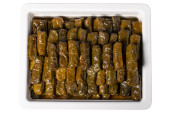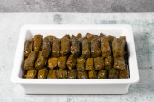 Wypchane liście winogron na szarym tle. Przysmaki kuchni tureckiej. zdrowe przekąski. Nazwa lokalna yaprak sarma