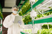 Zdjęcie "Młoda kobieta naukowiec z pipetą i szalką Petriego studiuje zielony szpinak i inne rośliny podczas podejmowania maleńki kawałek liścia podczas eksperymentu" może być wykorzystywane do celów osobistych i komercyjnych zgodnie z warunkami zakupionej licencji Royalty-free. Obraz jest dostępny do pobrania w jakości wysokiej rozdzielczości do 5760x3840.