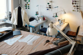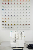 Zdjęcie "Skupianie się na miejscach pracy szwaczek lub garbarzy ze sprzętem elektrycznym, lampami i kolorowymi szpuletami nici na ścianie w warsztacie" może być wykorzystywane do celów osobistych i komercyjnych zgodnie z warunkami zakupionej licencji Royalty-free. Obraz jest dostępny do pobrania w jakości wysokiej rozdzielczości do 5760x3840.
