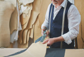 Zdjęcie "Zbliżenie dojrzałego profesjonalnego krawca z kawałkiem skóry, zamszu lub innego materiału włókienniczego w kolorze żółtym w dłoniach stojących przy miejscu pracy w studio" może być wykorzystywane do celów osobistych i komercyjnych zgodnie z warunkami zakupionej licencji Royalty-free. Obraz jest dostępny do pobrania w jakości wysokiej rozdzielczości do 5760x3840.