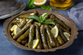 Zdjęcie "Pyszne dolma (sarma) nadziewane liście winogron ryżu, libański sarma dolma na talerzu. Liban turecki grecki kuchnia bliskowschodnia. (tureckie nazwisko; Yaprak sarma)" może być wykorzystywane do celów osobistych i komercyjnych zgodnie z warunkami zakupionej licencji Royalty-free. Obraz jest dostępny do pobrania w jakości wysokiej rozdzielczości do 5760x3840.