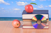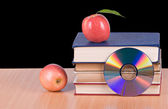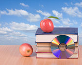 jabłka, dvd i książek jako symbol przejścia fron stary do ne