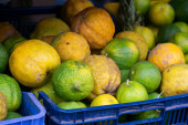 Różnorodność peruwiańskich cytryn z peruwiańskiej dżungli na targu w rejonie Amazonii.