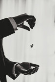 Zdjęcie "czarno-białe zdjęcie. Przystojniak zapiął rękaw w białej koszuli i pozuje do kamery. Z przodu. Światło dzienne. Moda i styl. Interesy. Męski styl. Piękne ręce" może być wykorzystywane do celów osobistych i komercyjnych zgodnie z warunkami zakupionej licencji Royalty-free. Obraz jest dostępny do pobrania w jakości wysokiej rozdzielczości do 5760x3840.