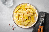 Zdjęcie "Gotowana żółta fasola, Długa fasola w zabójcy na ciemnym tle, smaczny posiłek" może być wykorzystywane do celów osobistych i komercyjnych zgodnie z warunkami zakupionej licencji Royalty-free. Obraz jest dostępny do pobrania w jakości wysokiej rozdzielczości do 5760x3840.