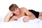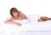 Zdjęcie "młody seksowny mężczyzna leżał na białe łóżko" może być wykorzystywane do celów osobistych i komercyjnych zgodnie z warunkami zakupionej licencji Royalty-free. Obraz jest dostępny do pobrania w jakości wysokiej rozdzielczości do 5760x3840.