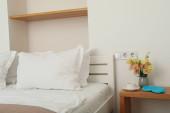 Zdjęcie "Piękna sypialnia w białych kolorach z łóżkiem" może być wykorzystywane do celów osobistych i komercyjnych zgodnie z warunkami zakupionej licencji Royalty-free. Obraz jest dostępny do pobrania w jakości wysokiej rozdzielczości do 5760x3840.