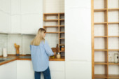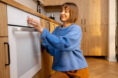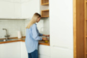 Zdjęcie "Młoda kobieta przygotowuje śniadanie w kuchni." może być wykorzystywane do celów osobistych i komercyjnych zgodnie z warunkami zakupionej licencji Royalty-free. Obraz jest dostępny do pobrania w jakości wysokiej rozdzielczości do 5760x3840.