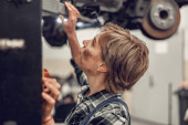 Zdjęcie "Dwóch uśmiechniętych kolegów naprawia rower w warsztacie. Mechanika rowerowa naprawia nowoczesny system transmisji rowerów. Koncepcja konserwacji rowerów i sklepu sportowego" może być wykorzystywane do celów osobistych i komercyjnych zgodnie z warunkami zakupionej licencji Royalty-free. Obraz jest dostępny do pobrania w jakości wysokiej rozdzielczości do 5760x3840.